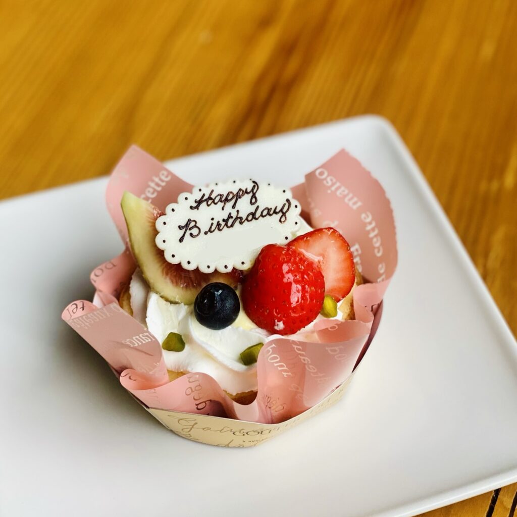 お誕生日や記念日、人生の新たな扉を開くときや何かを達成されたときなど、おめでたい時のディナーのラストに、当店近くのケーキ屋さんのつくる、とても可愛らしいケーキでのサプライズはいかがでしょうか。